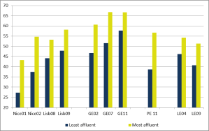 Figure 6 shows that turnout levels in the more middle class areas tends to be signficantly higher than in the more working class areas for all electoral contests, but the gap between these varies according to the election and when this gap especially narrows there can be significant impacts in terms of election results, as especially evident in the 2004 local election, 2008 Lisbon Treaty referendum and the 2011 General Election.