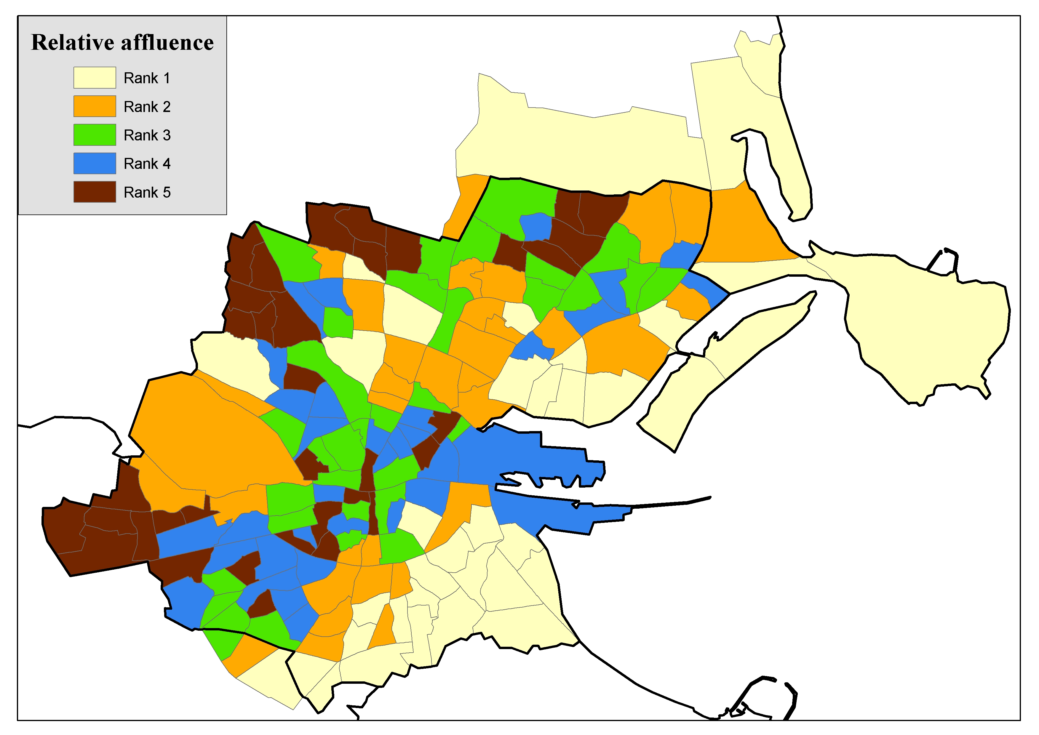 Figure 2: Social areas within the Dublin City constituencies based on a factor analysis of Census 2011 variables