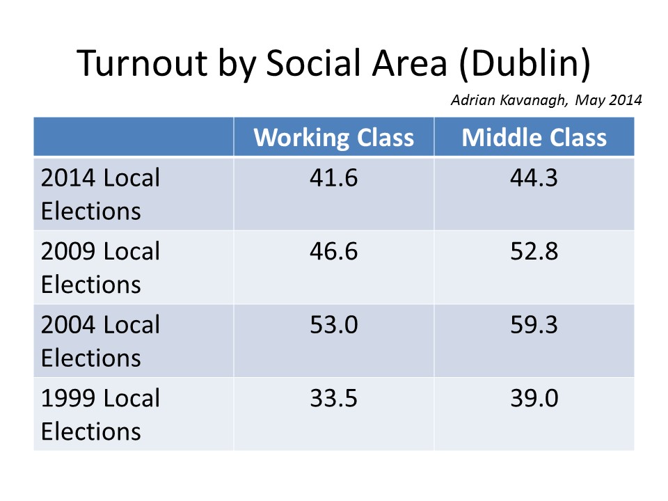 The elections of May 23rd 2014 saw the second lowest turnout levels for local election contests in the history of the state – with only the turnout levels at the 1999 contests being lower. This marked a disappointing reversal of the general trend in turnout levels at general and local election contests in the 2000s, which saw a marked improvement on participation at the very low turnout contests of the 1999 Local and European Election and the 2002 General Election.