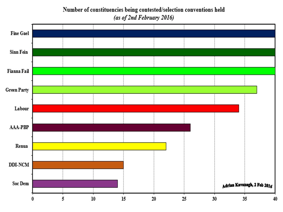 Figure 1: Number of constituencies being contested by different political parties (number of selection conventions held) as of 2nd February 2016