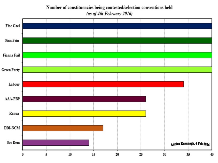 Figure 1: Number of constituencies being contested by different political parties (number of selection conventions held) as of 4th February 2016