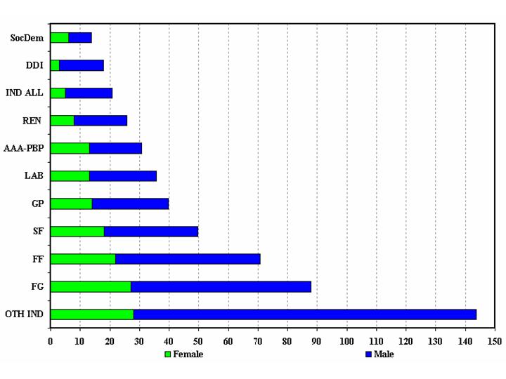 Figure 1: Overall General Election 2016 candidate numbers by major political party/political grouping (12th February 2016)